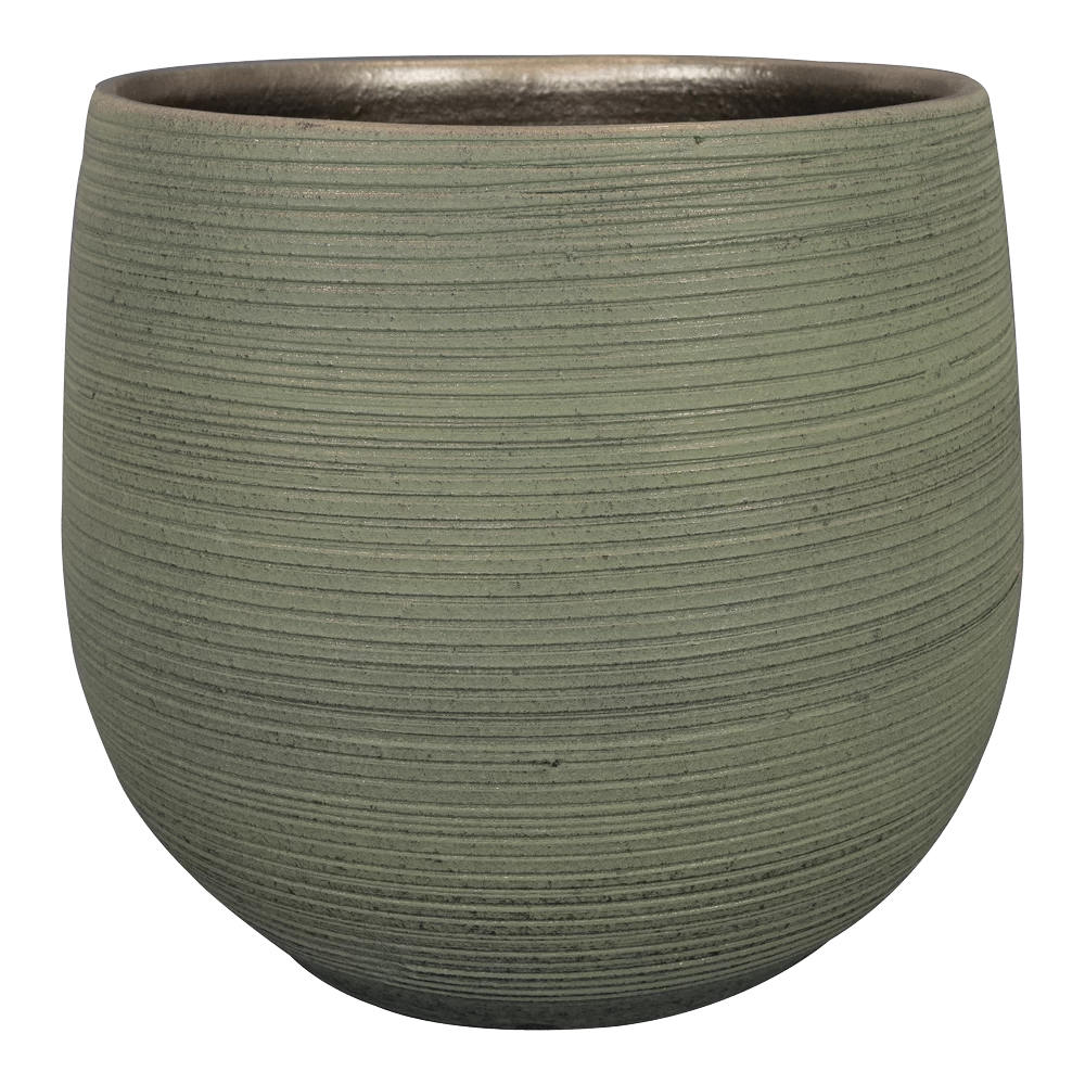 Kijk eens naar deze stijlvolle pot met mondaine uitstraling. Het vrijzinnige streeppatroon brengt kalmte met een knipoog naar sjiek. De binnenkant is goudkleurig. Pottenbakkers in Portugal maken deze serie van TS Collection nog traditioneel gemaakt. Dat gebeurt op draaiplateaus, met de handen. Vervolgens wordt de textuur aan de buitenkant met een speciale tool aangebracht. Daarna wordt de pot gebakken en vervolgens, ook handmatig, gespoten in de juiste kleur. Er is keuze uit frisse, flitsende kleuren volgens de laatste trends.