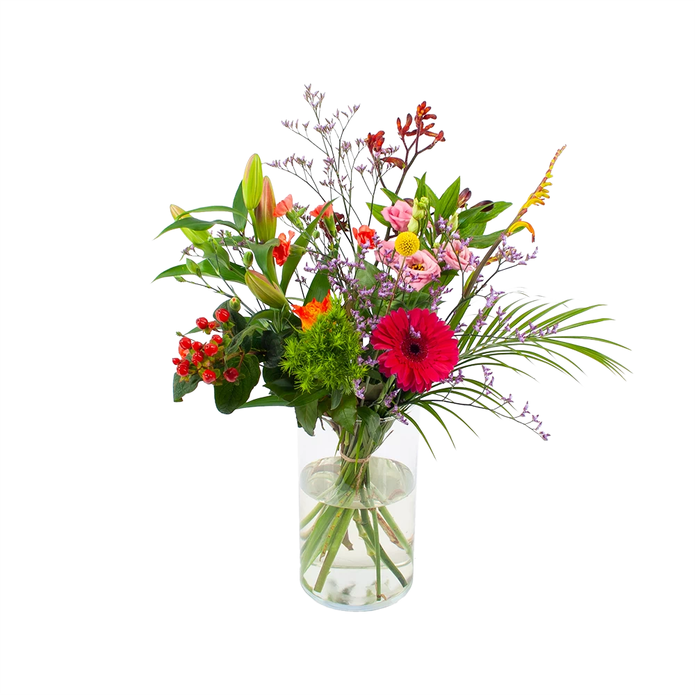 Met Boeket Kleurrijk geplukt breng je de gezelligheid in huis! Geniet van de verste en mooiste bloemen en fleur je huis op! Altijd vers van de kweker! Verwen jezelf of verras iemand anders met een prachtig boeket. *Exclusief accessoires en vaas.