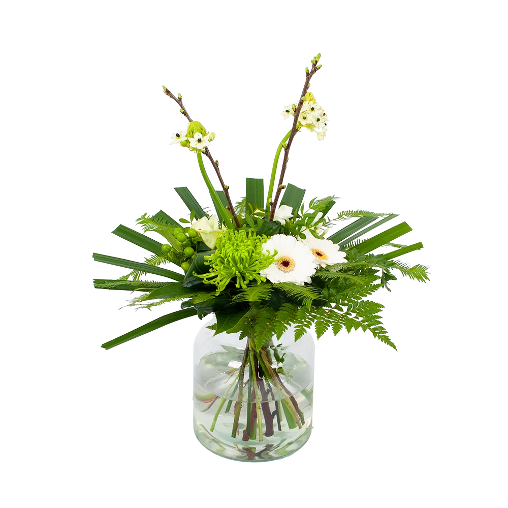 Met Boeket Liefdevolle Winter haal je een prachitg wit bladboeket in huis! Geniet van de mooiste witte bloemen. Altijd vers van de kweker! Verwen jezelf of verras iemand anders met een prachtig boeket. *Exclusief accessoires en vaas.