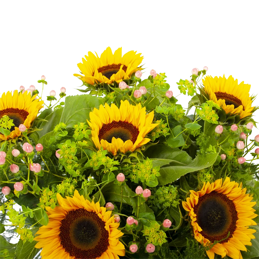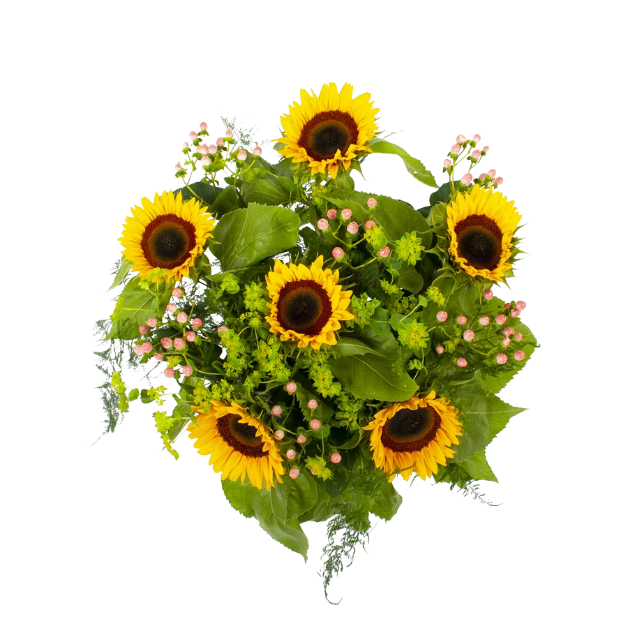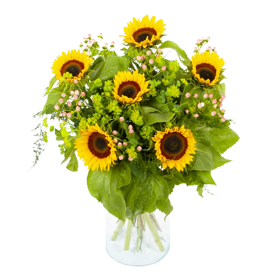 De practhige combinatie tussen zonnebloemen en groen geeft boeket zonnestraal een gezellige en zomerse uitstraling. Dit zonnebloemen boeket creëert meteen een prachtige sfeer in huis. Bovendien geschikt voor verschillende gelegenheden. Feliciteer, bedankt of verstuur zomaar dit prachtige handgebonden boeket en verras de ontvanger! * Exclusief accessoires en vaas