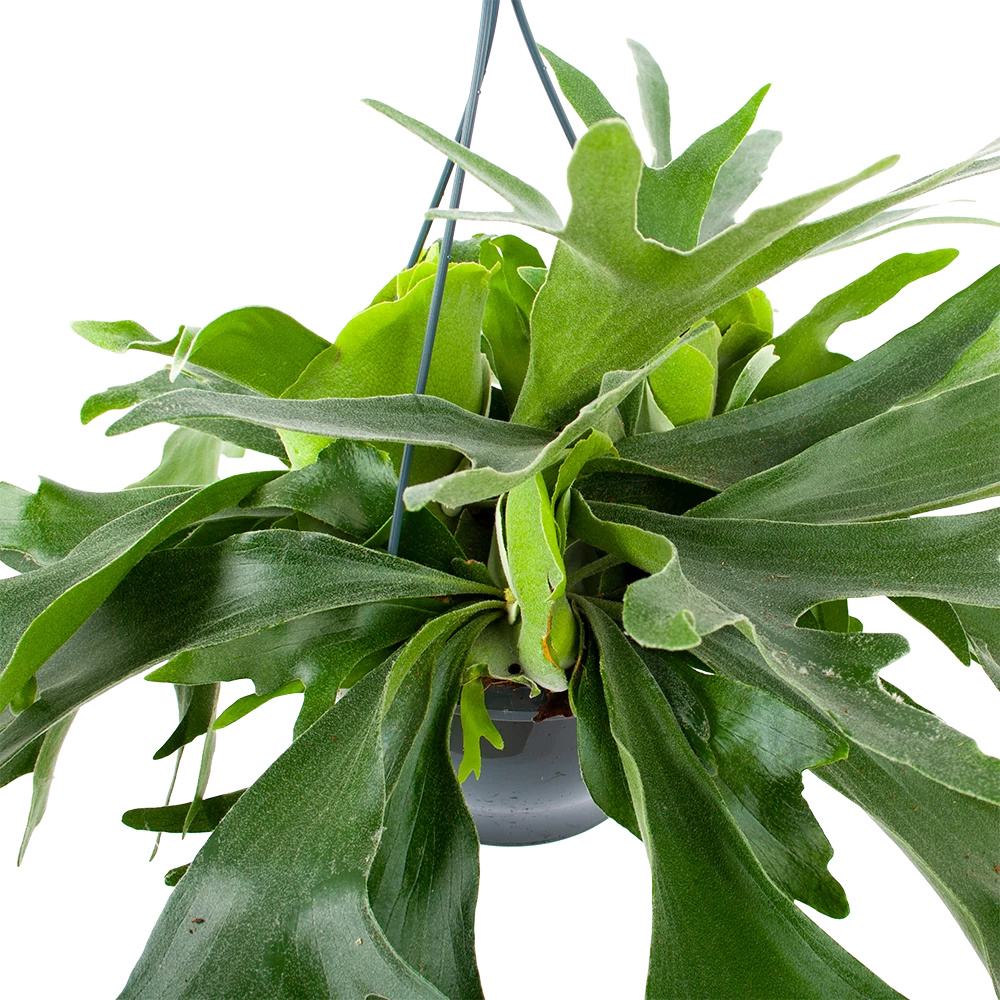 Platycerium Bifurcatum – Hertshoornvaren – In Hangpot – P21 H60 – Kamerplant