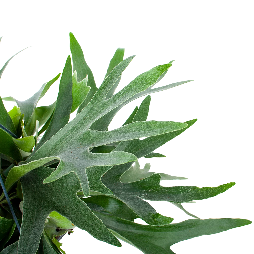 De Platycerium Bifurcatum is een varen die graag de ruimte krijgt en het zowel staand als hangend goed doet op schaduwrijke plekken. De bijnaam Hertshoornvaren heeft hij dankzij zijn groene gewei vormige bladeren. Ook heeft hij onderaan de stam bruine bladeren die zorgen voor stevigheid en dienen als voedsel, laat deze dus vooral zitten. De viltachtige laag op zijn bladeren zorgt ervoor dat de Hertshoornvaren niet te veel water verdampt. Het is dus voldoende als je hem eens in de week wat water geeft.