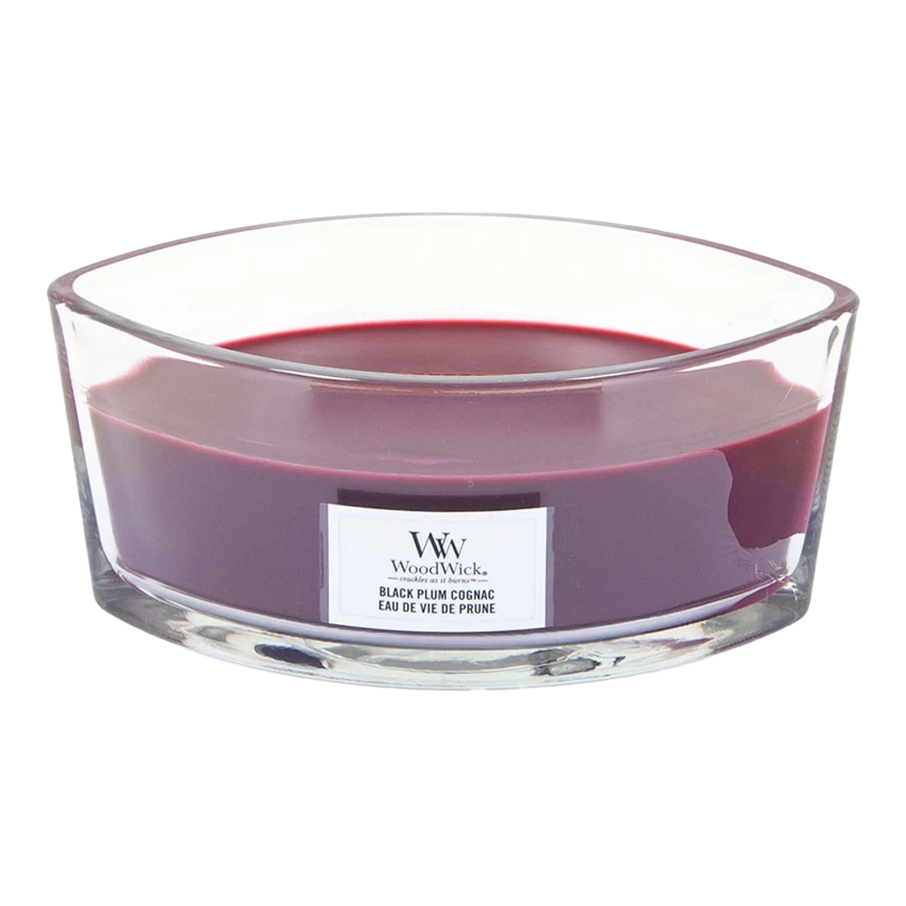 Woodwick Black Plum Cognac Ellipse Candle – Geurkaars
