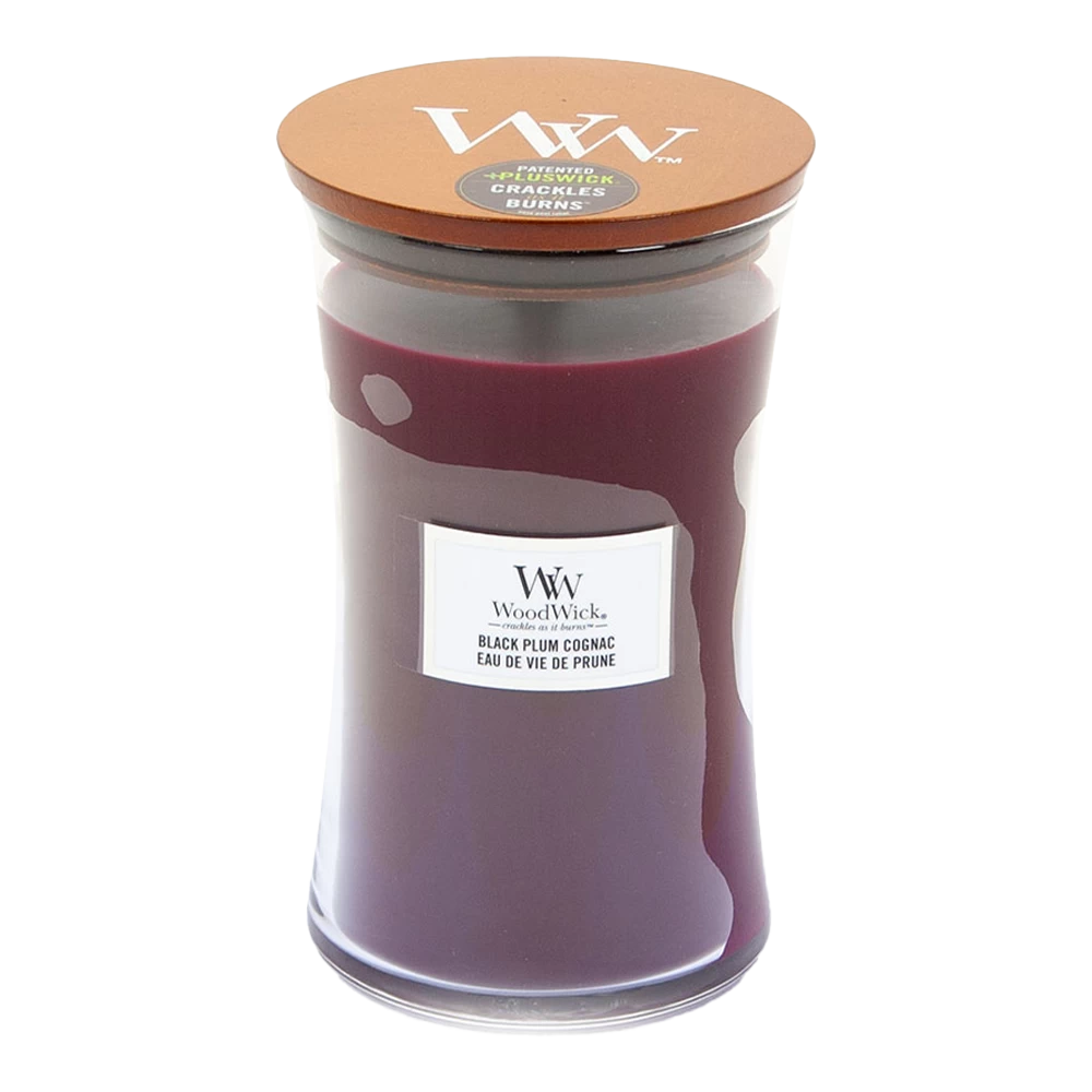 Woodwick Black Plum Cognac Large Candle – Geurkaars